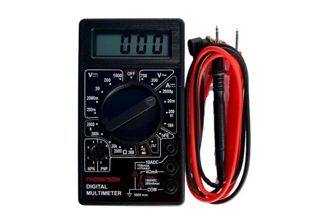 O Multímetro Digital Thompson (código 880 / EAN 7898011976079) é um instrumento de medição digital portátil desenvolvido para fornecer resultados rápidos e confiáveis em medições elétricas essenciais em oficinas, laboratórios, residências e trabalhos técnicos. Construído com visor LCD de fácil leitura e operação intuitiva, este multímetro permite aferir tensão contínua (DC) e alternada (AC), corrente DC, resistência elétrica, além de possibilitar teste de diodos e continuidade com alarme sonoro, o que aumenta a eficiência e a segurança do usuário ao diagnosticar circuitos e componentes. Equipado com um par de pontas de prova e alimentação por bateria de 9 V, o dispositivo combina versatilidade e portabilidade, sendo adequado tanto para profissionais da área eletroeletrônica quanto para estudantes e entusiastas de eletricidade que buscam um equipamento prático para medições básicas e intermediárias. Confeccionado em materiais resistentes e com construção compacta, este modelo apresenta boa durabilidade para uso cotidiano e é uma solução econômica para tarefas de manutenção, verificação de instalações e testes elétricos em geral.